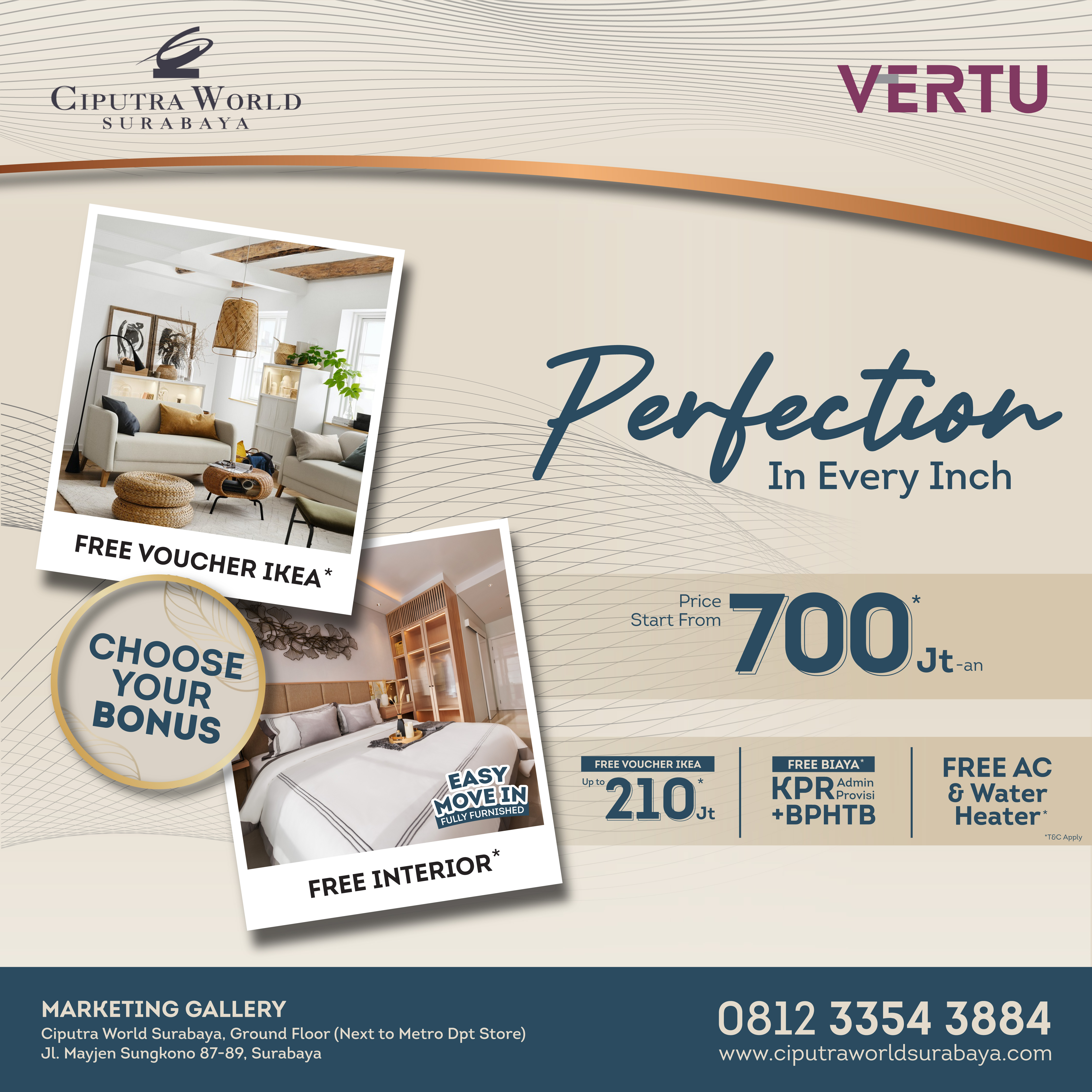 mulai dari harga 700 juta-an Anda sudah mendapat The Vertu Apartment.