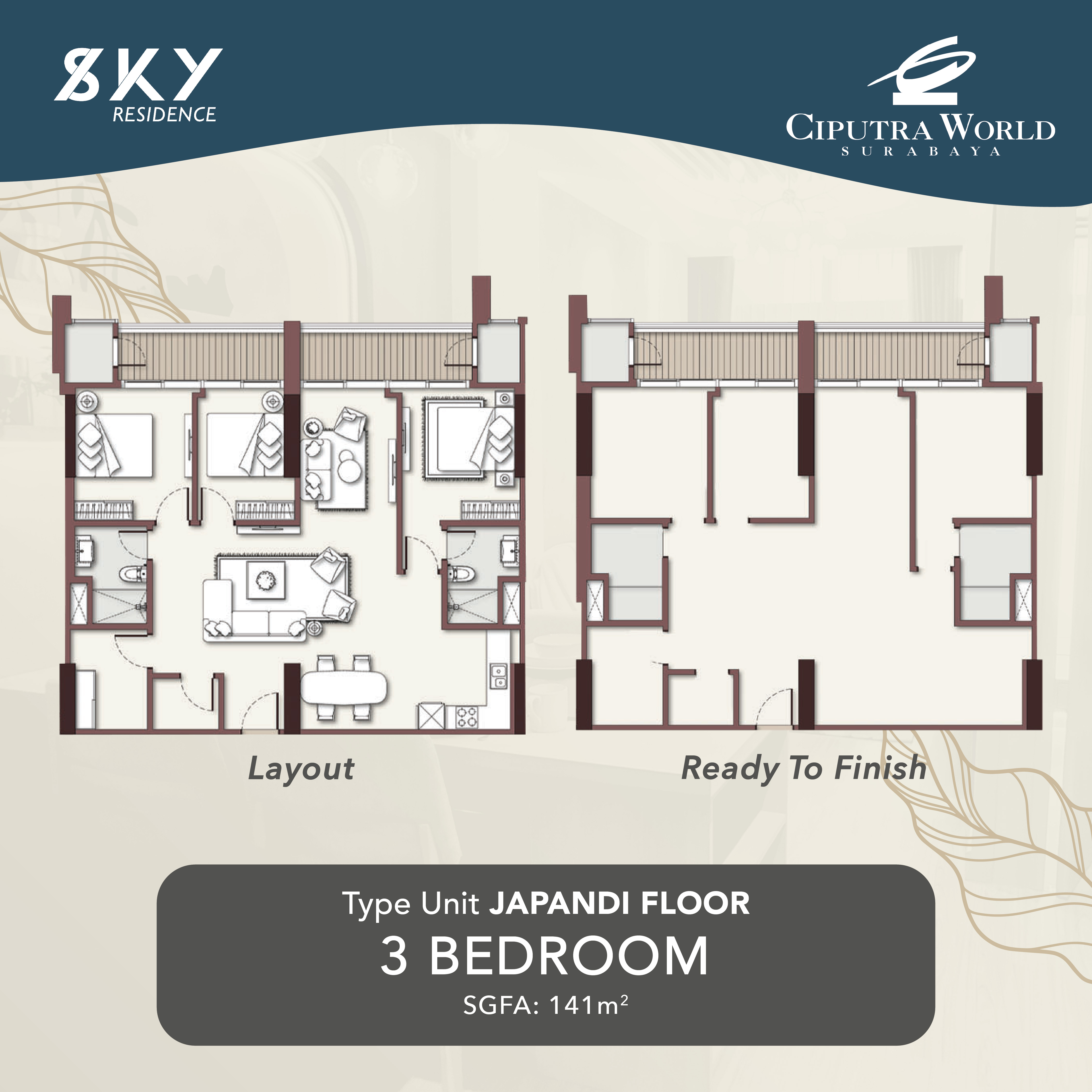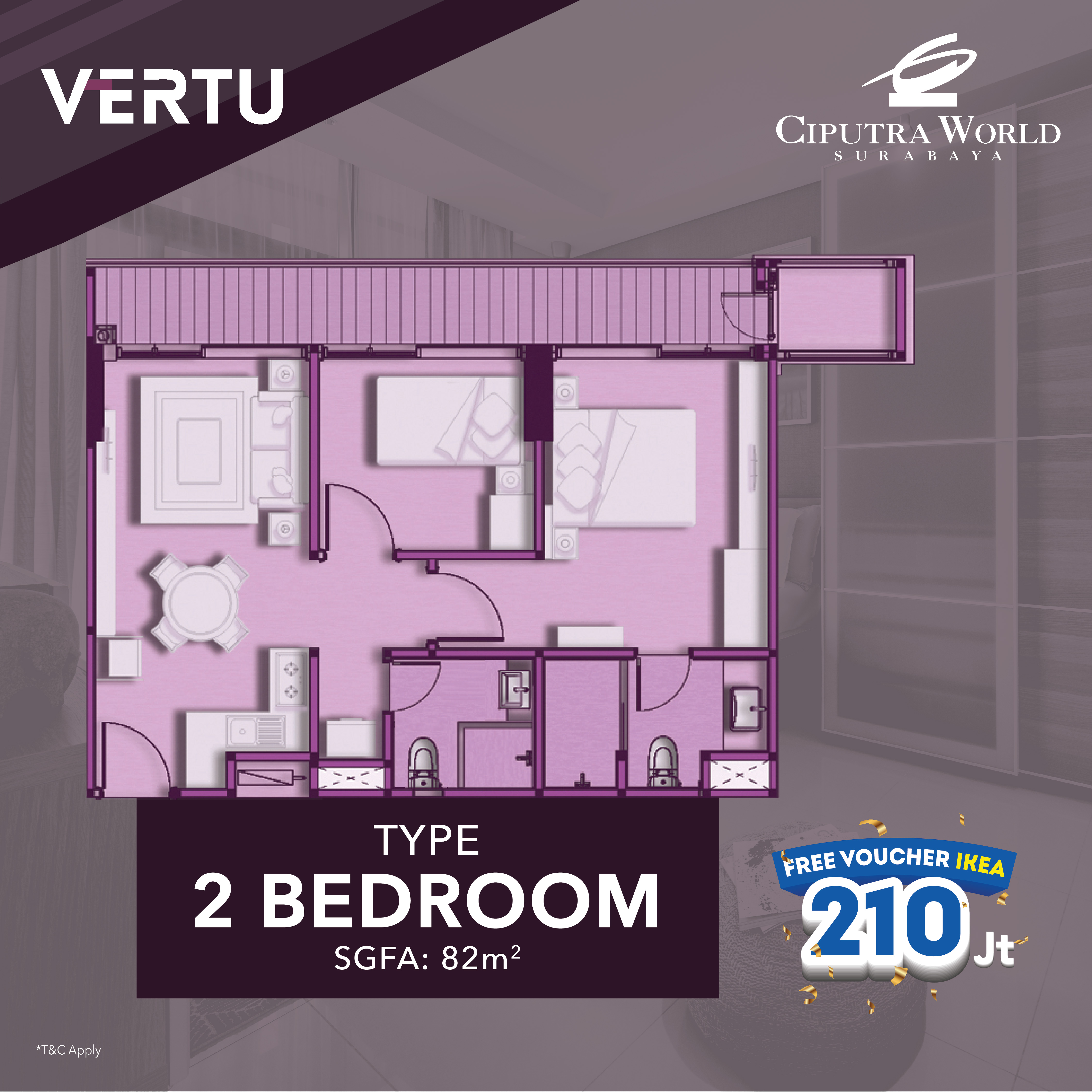 Tersedia 2 bedroom compact - 3 bedroom Luasan mulai dari 68 m2