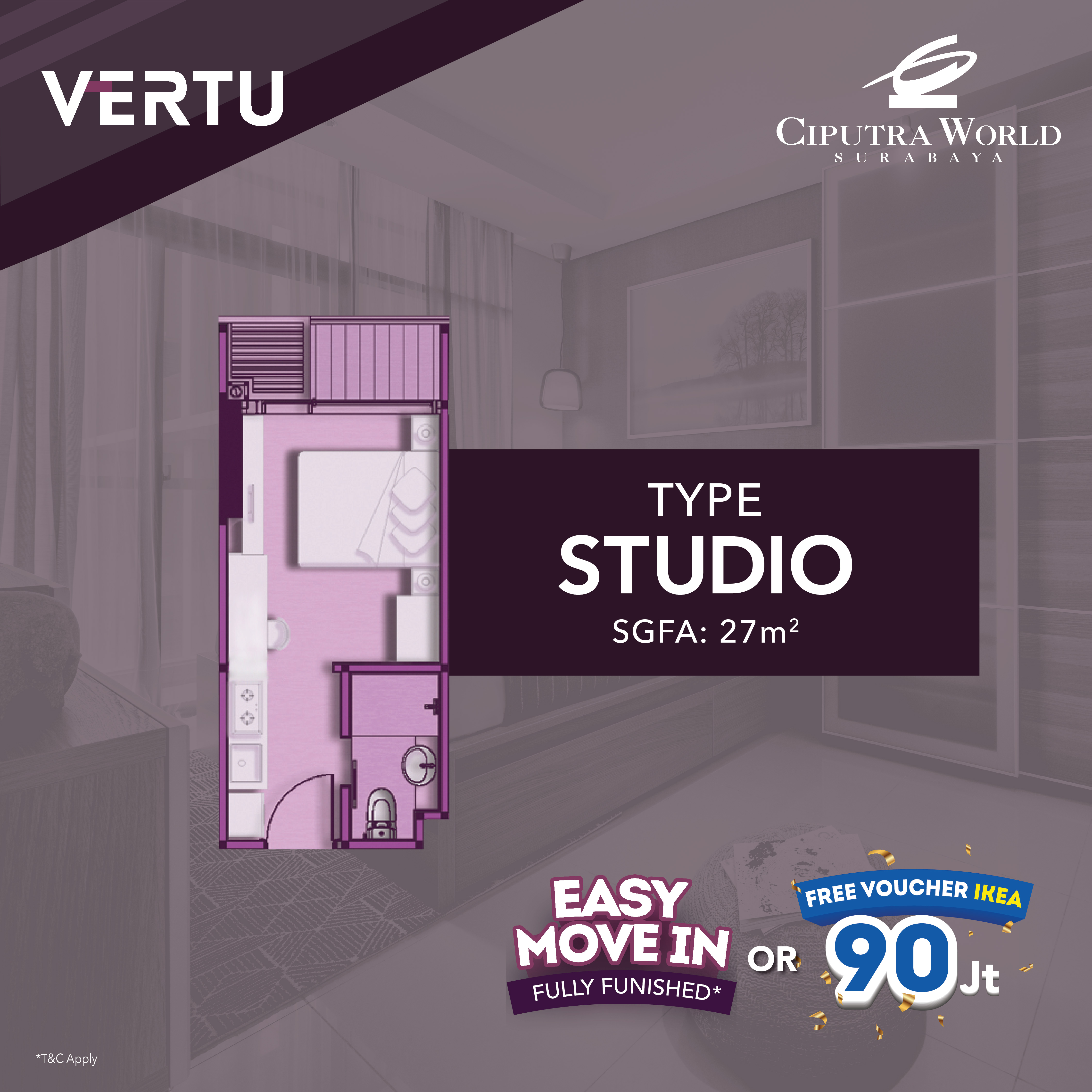 Tersedia mulai dari Studio - 2 Bedroom Ketinggian floor to floor 3.5 m